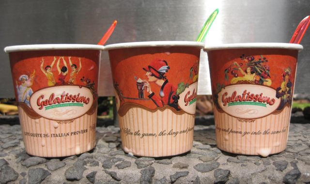 I love the Italian proverb on these gorgeous little ice cream cups: After the game, the king and pawn go into the same box. Says a lot.