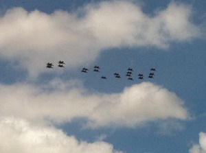 First, we took delivery of another four Super hornets. Half the city came out to the river, looking in precisely the wrong direction (down the Brisbane River, ‘cos that’s what happened for River Fire, all right?!) when the cluster of twenty Super hornets whizzed over the city, from behind us. It was a moment of WOW, quickly followed by WAS THAT IT? And, ARE THEY COMING BACK? Sadly, a few thousand people had to go back to work sooner than they had hoped.