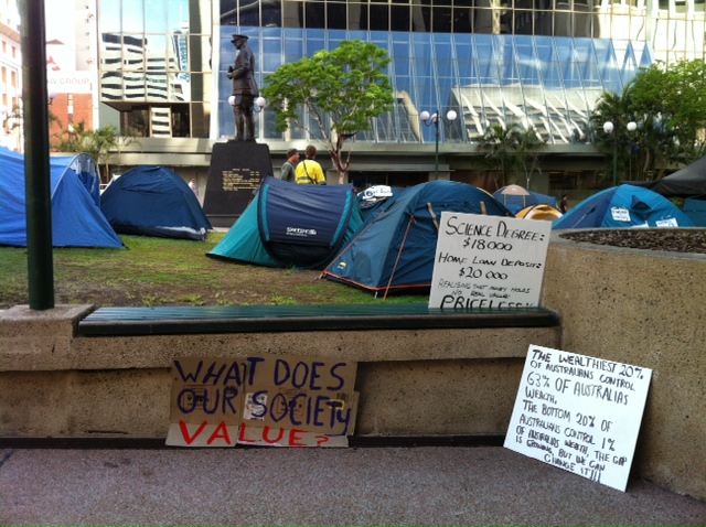 People would be familiar with the Occupy movement which started on Wall St and spread via social networking to a city near you. Including, to my fair city, Brisbane, Australia.