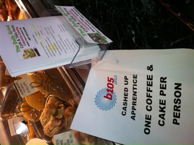 Today, feeling almost sad that there was nothing big going down in the town, my luck turned. Local FM radio personality, Stav, from B105, came to my local cafe as the coffee-making apprentice. Being in the right place, at the right time, I scored my favourite gluten-free coconut biscuit and lactose-free flat white for free! Sure, we had to shout FASTER STAV! but he managed in the end, and that’s what matters.